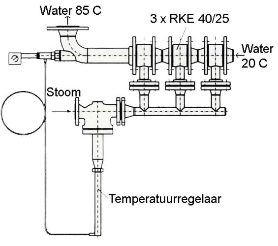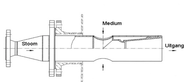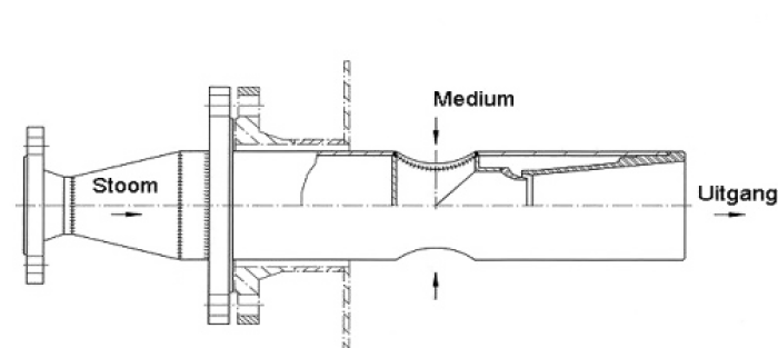 Our steam injectors can also be mounted in a tank to heat water or other liquids. The temperature of the medium to be heated increases very evenly and the medium cannot burn. The injected hot steam heats the liquid in the tank directly, while mixing it at the same time, resulting in a good homogenisation of the medium.